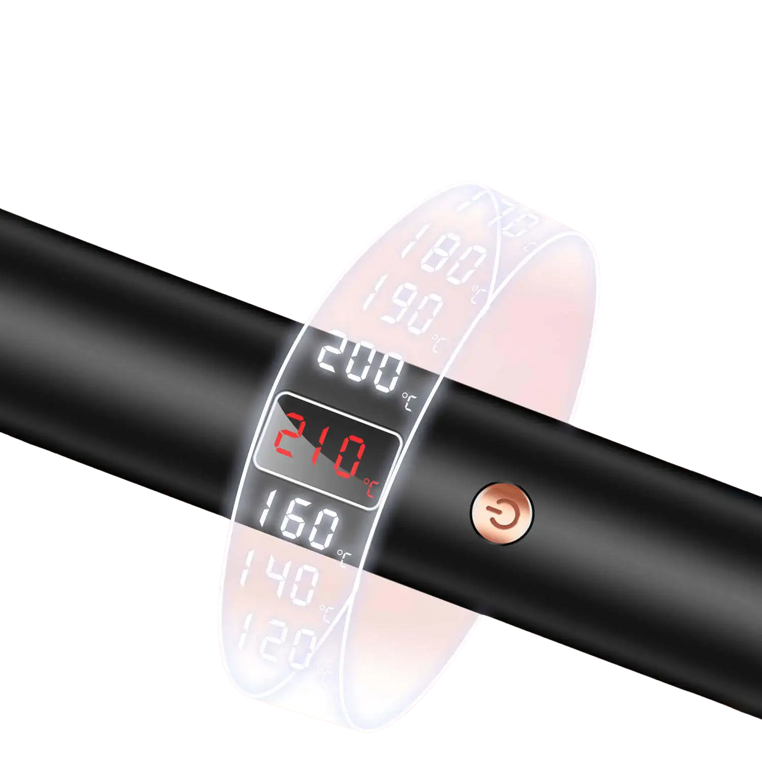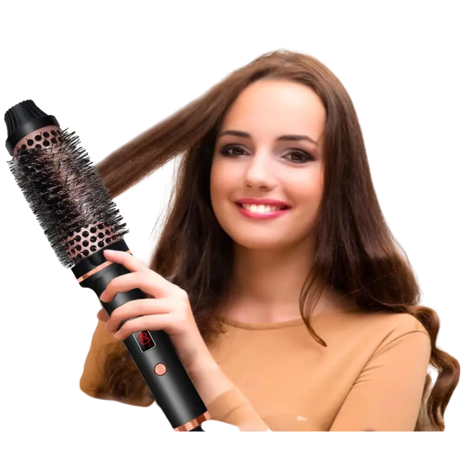 Rizador, plancha y cepillo en un solo dispositivo. Tecnología cerámica tourmaline para reducir el frizz y aportar brillo natural.